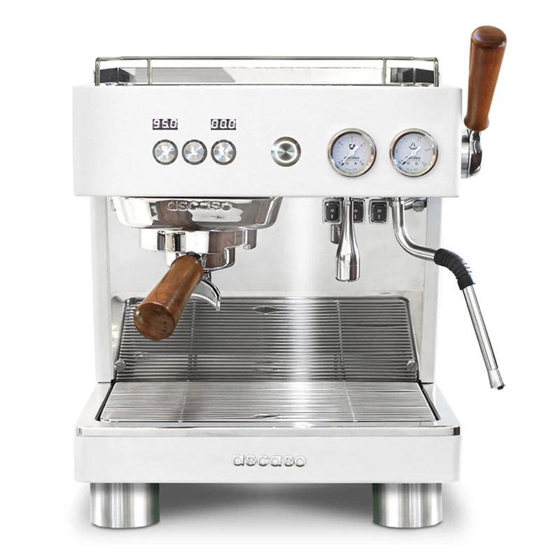 Mit der eigens entwickelten T-Technologie löst Ascaso die bewährte E61 Brühgruppe ab und sorgt damit für eine Innovation, welche unter anderem 50% der Energie einspart, die herkömmliche Espressomaschinen benötigen. Die zugehörige Multi-Group Technologie gewährleistet eine äußerst hohe Temperaturstabilität bei einer Abweichung von nur +- 0,5° C. Zum Brühen Ihrer Espressi verwendet die Ascaso Baby T stets frisches Wasser, welches nicht zuvor in einem Kessel etliche Male zuvor erhitzt und wieder abgekühlt wurde. Dies wirkt sich auf den Geschmack aus und sorgt für stetig frische Kaffeegenussmomente. Die PID-Steuerung, welche über die Ascaso-App vorgenommen werden kann, ermöglicht Ihnen das Feintuning Ihrer Espressi durch zum Beispiel eine Veränderung der Brühtemperatur oder der Pre-Infusionszeit. Probieren Sie sich durch die vielen Funktionen und entdecken Sie Ihre Bohnen neu.