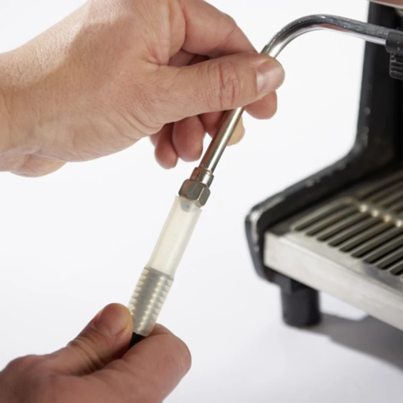 Mit dem Dampfpinsel von Joe Frex lässt sich Ihre Brühgruppe unkompliziert und besonders effektiv reinigen. Sie schließen lediglich den Schlauch des Dampfpinsels an die Dampflanze an und können direkt mit Ihrer Reinigung beginnen. Im Lieferumfang sind zwei verschiedene Schlauch-Adapter enthalten, sodass sich der Dampfpinsel an jede Dampflanze anschließen lässt.
