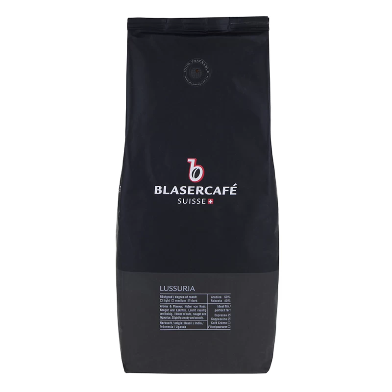 Der Lussuria von Blasercafé ist eine tolle Komposition aus 60% Arabica Bohnen und 40% Robusta Bohnen. Dunkel sind die Bohnen geröstet. Noten von Nuss, Nougat, Lakritze und Schokolade geben dem Kaffee seine Kraft. Im Hintergrund sind die Aromen leicht rauchig und holzig. Die Säuren und Bitternoten sind sehr fein, die Süße sehr deutlich.