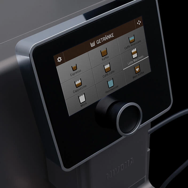 Bei der Vielfalt an verschiedenen Kaffeespezialitäten und Aromaprofilen, welche sich mit dem Nivona CafeRomatica 970 Vollautomaten zubereiten lassen, könnte man tatsächlich denken, da säße ein kleiner Barista in der Maschine. Acht Getränke sind werksseitig bereits vorinstalliert, neun lassen sich individuell über die „Mein Kaffee“-Funktion programmieren. Jede dieser Spezialitäten lässt sich dabei noch über das Aroma Balance System in drei Aromaprofile einteilen. Die Temperatur Ihres Lieblingsgetränks können Sie dank des Milk-Control-Systems in vier Stufen wählen, die Kaffeestärke sogar in fünf Stufen. Über die Live-Programmierung können Sie hierbei Ihre Rezepte speichern. Hierzu zählen der klassische Espresso, Café Crème, Caffè Lungo, Cappuccino und Latte Macchiato. Der Bezug von heißer Milch und Heißwasser ist natürlich ebenso möglich. Die Bedienung erfolgt hier ganz intuitiv über das große 5 TFT-Touchdisplay, welches exklusiv dieser Baureihe vorbehalten ist. Alternativ können Sie sich Ihren Kaffee über Aroma Pre-Select mit der Nivona App nach Barista Empfehlung zubereiten. Die hauseigene Nivona App lässt sich einfach per integriertem Bluetooth-Modul verknüpfen, sodass Sie Ihre Lieblingsgetränke jederzeit mit Ihrem Smartphone zubereiten lassen können.