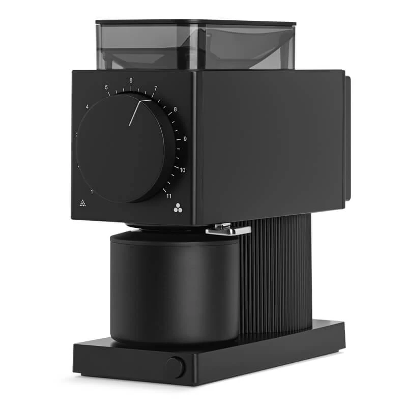 Im Herzen der Fellow Ode Gen 2 steckt das neue Mahlwerk von Fellow, die sogenannten Gen 2 Brew Burrs. Die Geometrie der Mahlscheiben im beliebten 64 mm Format wurden so angepasst, dass die neue Fellow Ode feiner eingestellt werden kann als die erste Generation. Nach wie vor ist die Fellow Ode jedoch auf Filterkaffee spezialisiert und nicht für Espresso geeignet. Während besonders enthusiastische Kaffeefans die Mahlscheiben bei der Gen 1 gerne gegen höherpreisige austauschten, liefern die neuen Mahlscheiben der Gen 2 bereits von Werk aus ein äußerst erhabenes Mahlergebnis. Die Partikelverteilung sorgt in der Tasse für besonders balancierten und süßen Kaffee. Die großen 64 mm Mahlscheiben in senkrechter Ausrichtung sorgen im Übrigen für besonders schnelles Mahlen. Dabei ist die Mühle auch wesentlich leiser als vergleichbare Mühlen mit kleineren Mahlscheiben oder Kegelmahlwerk. Extrem praktisch ist auch, dass der Motor dank der PID-Steuerung besonders gleichmäßig mahlt und erkennt, wenn alle Bohnen durchgemahlen sind. Die Mühle schaltet sich dann automatisch ab.