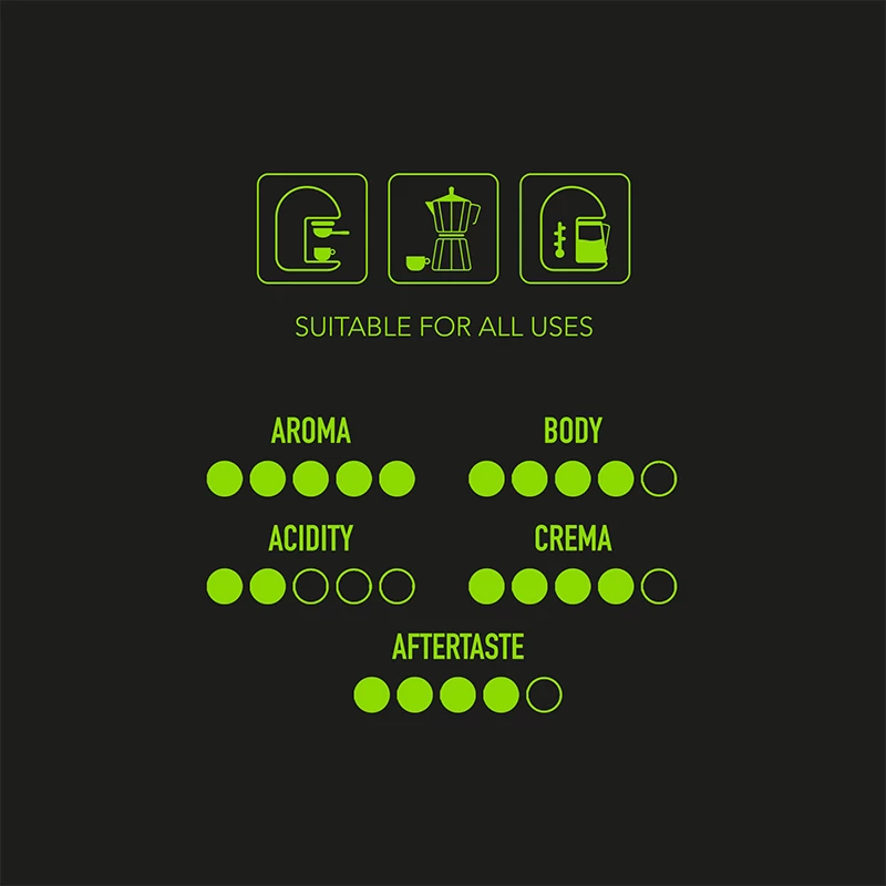 Der Opera in der 1000 g Packung von Mikah besteht zu 100 % aus Arabica Kaffeebohnen und ist eine Mischung aus Südamerika, Asien und mit einem kleinen Prozentsatz aus Zentralafrika. Nur zusammen ergeben die Arabica Bohnen eine Mischung mit einem mittleren Körper und einem leichten, süßen Geschmack mit einer Note von geröstetem Brot, welche an samtige Sahne erinnert.