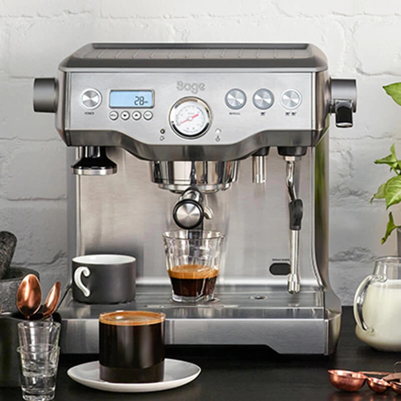 The Dual Boiler von Sage basiert auf einem Dual-Boiler Heizsystem, verfügt über einen 2,5 l Wassertank und ist aus hochwertigem Edelstahl hergestellt. Durch das Dual-Boiler Heizsystem wird der zeitgleiche Bezug von sowohl Espresso, als auch Dampf für Milchschaum ermöglicht. Dank der integrierten PID-Steuerung lässt sich die Temperatur des Brühwassers auf bis zu +/- 1°C genau regulieren.